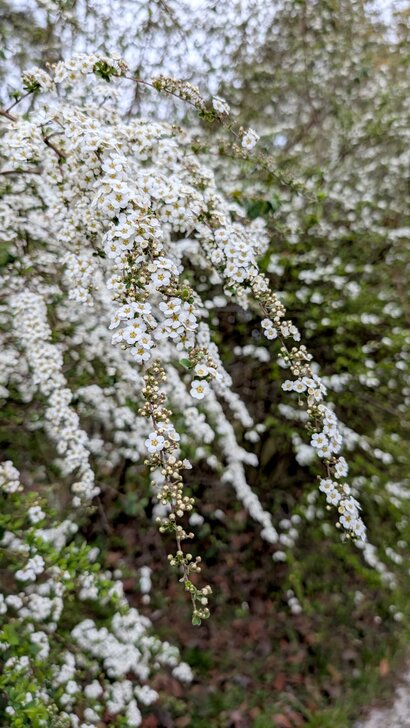 上層是霧社櫻,下層還有笑靨花開,全面雪白!↑↓
