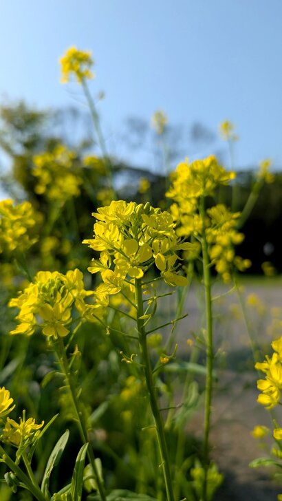 遠處路邊停好車(櫻花季車子不能進去),再往天元宮走去,路旁菜圃菜花開.↓