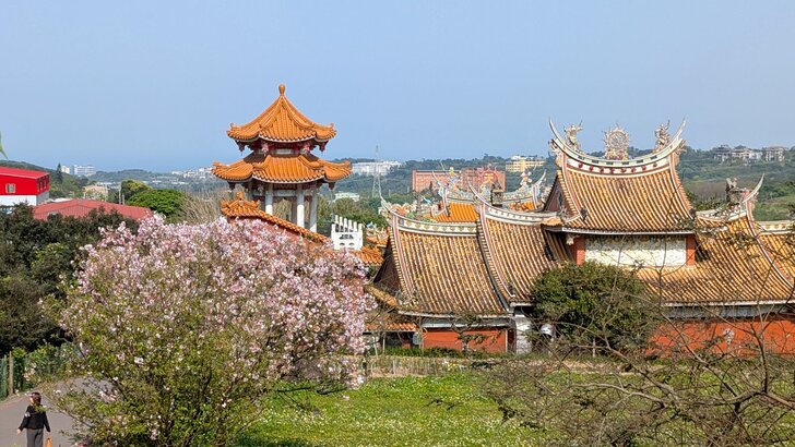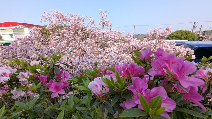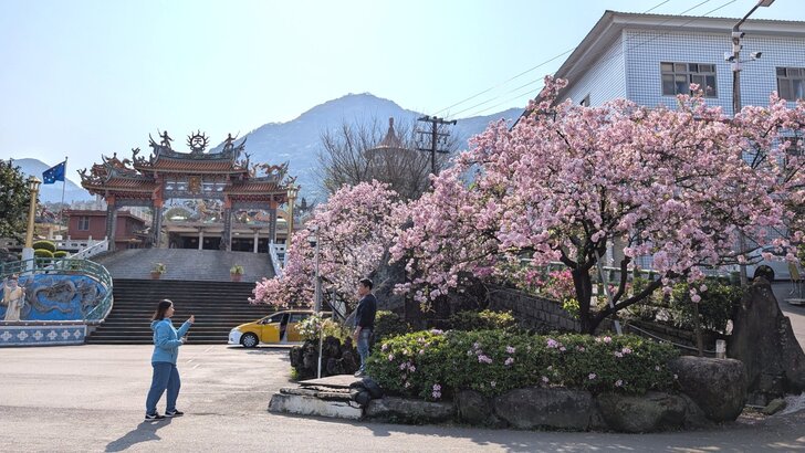 離開天元宮到三芝三生步道,路邊幾株櫻花開.↓