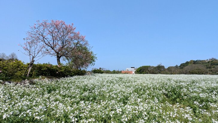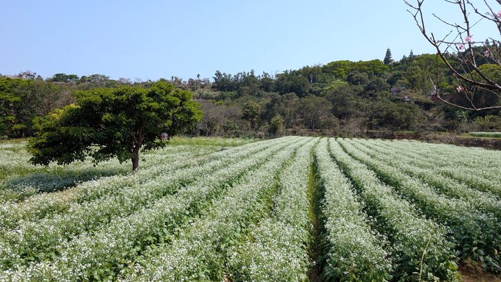步道的櫻花也是尾聲,不過菜園裡的蘿蔔花又美又盛!↑↓