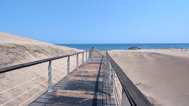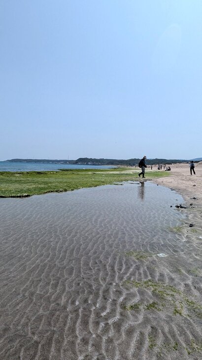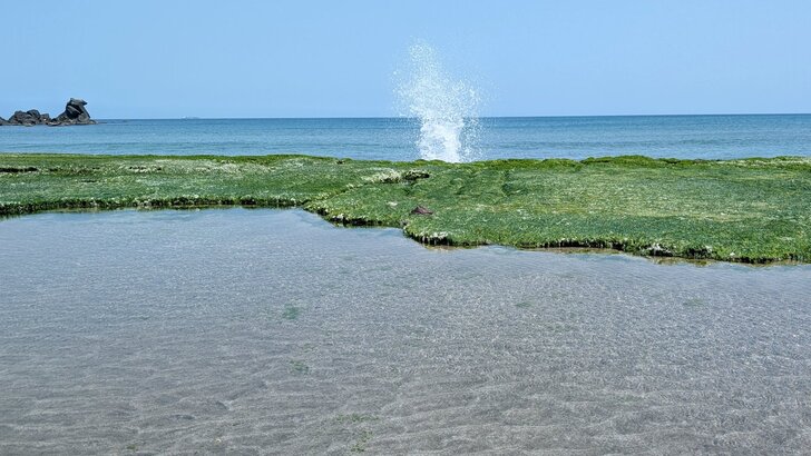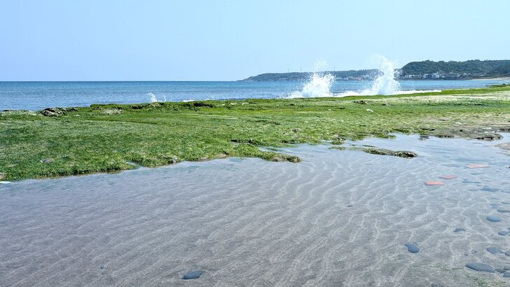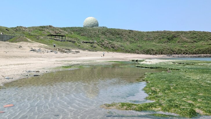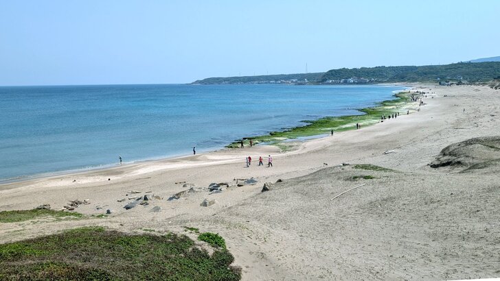 我看到其中一隻成鳥飛向沙丘那面,顯然去餵養雛鳥,不過我也就不去打擾了,回頭拍一張石槽照片,就往富貴角燈塔步道走上去.