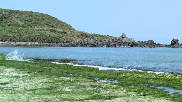 遠處就是綠石槽,但怎麼有一大片白化了呢?是因天氣太乾嗎?↑
