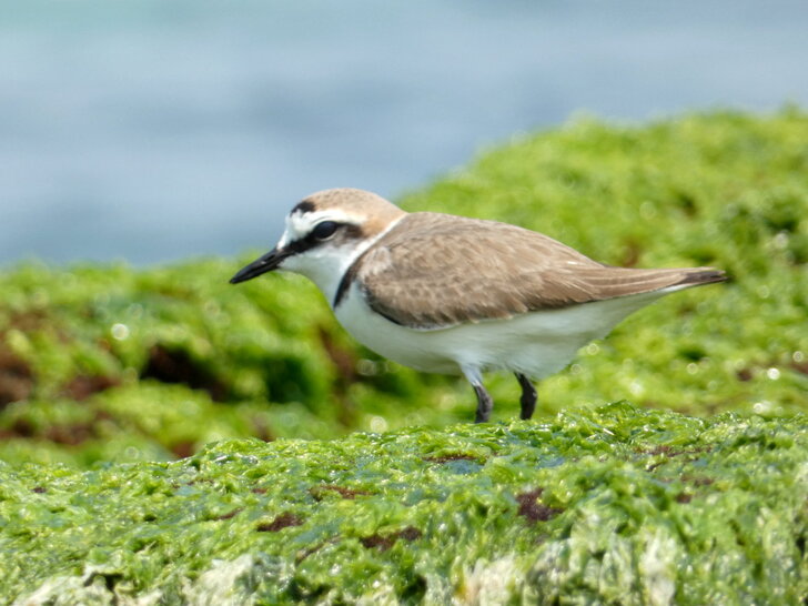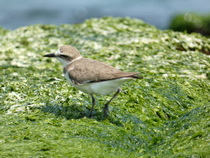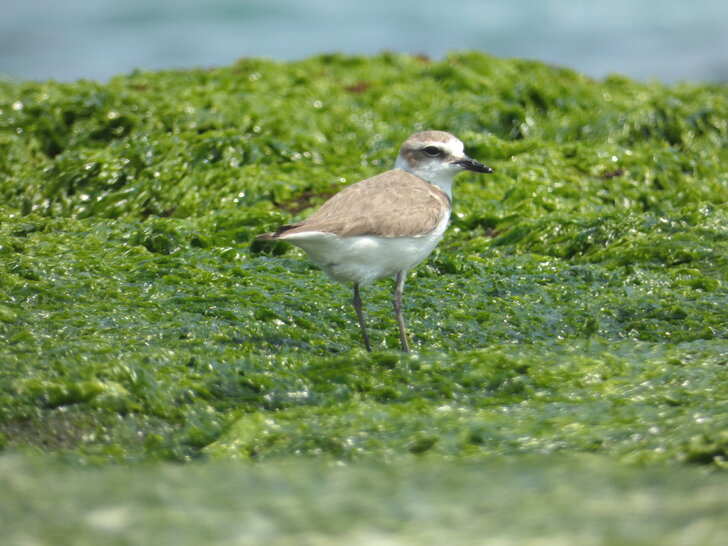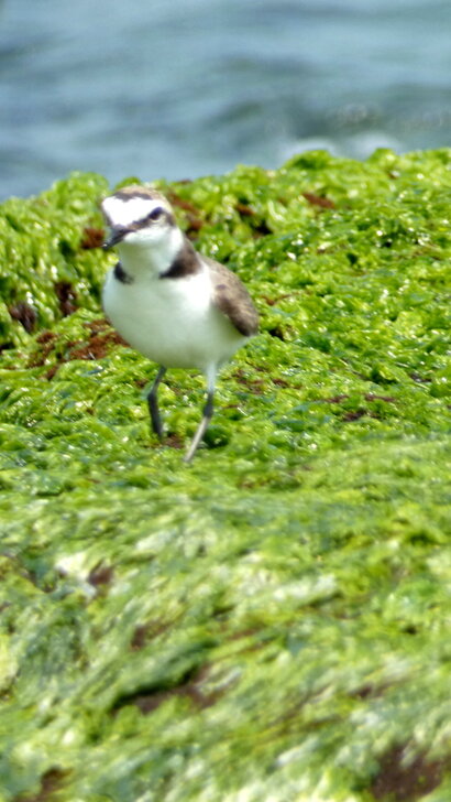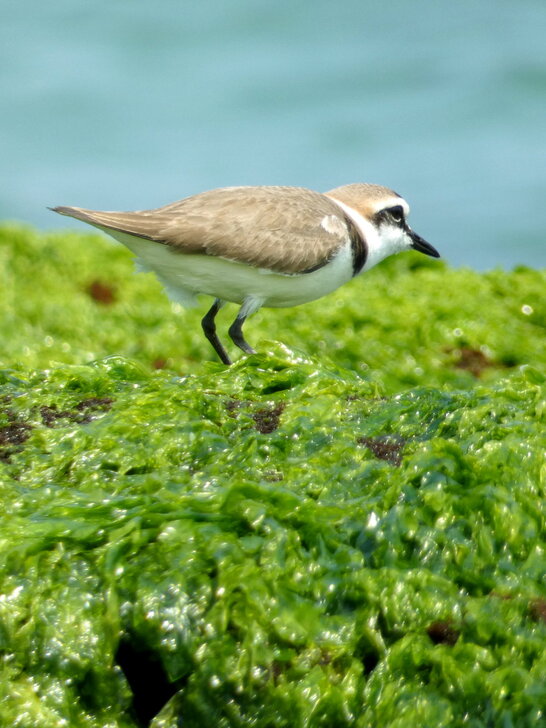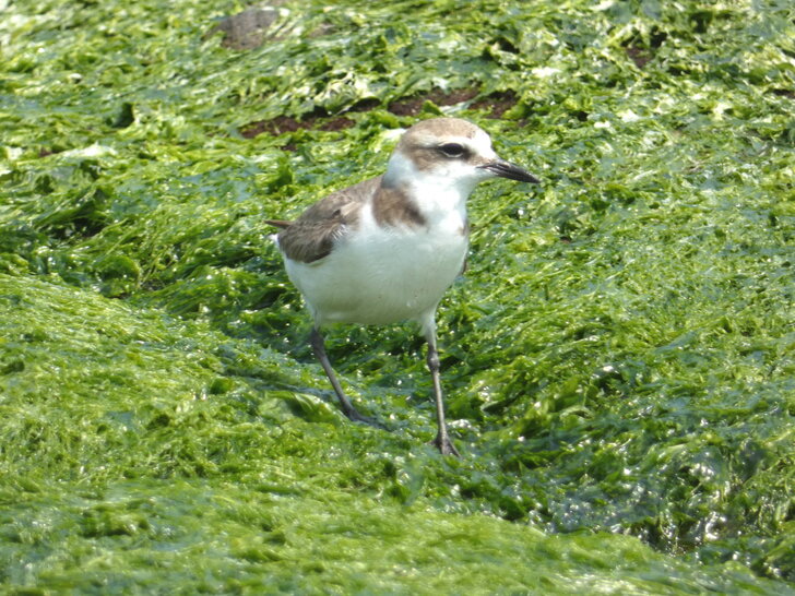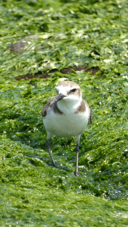 每年這時都會有東方環頸鴴來這裡育雛,於是我仔細找尋一下,有了,兩隻成鳥在覓食.↓