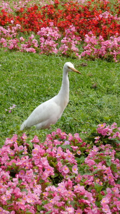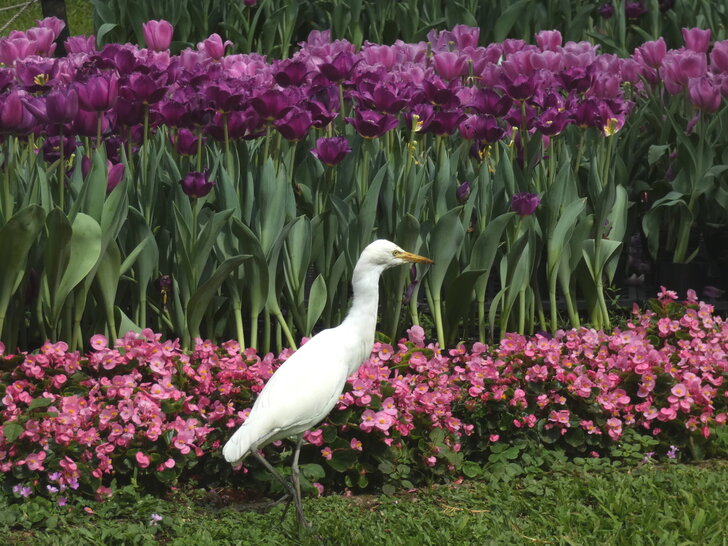 中白鷺也來花前賞花!(當然是來覓食的.)↑