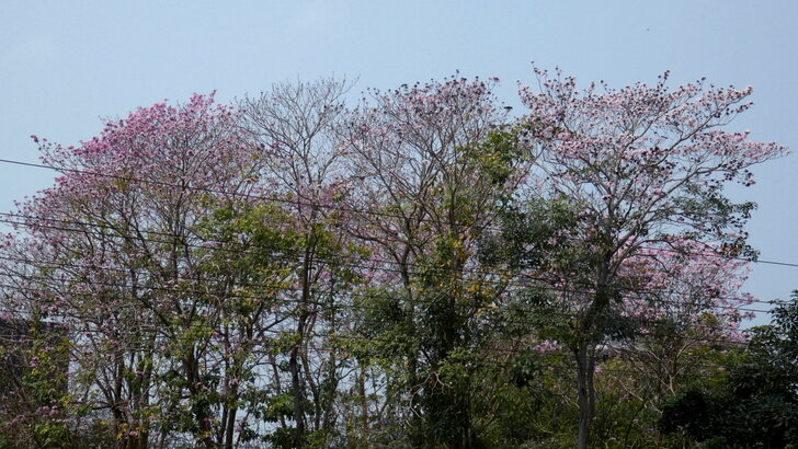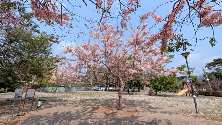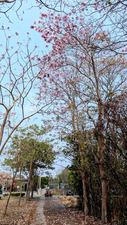 公園對面幾株高大的洋紅風鈴木開著,台北的洋紅風鈴木好像還按兵不動.↓