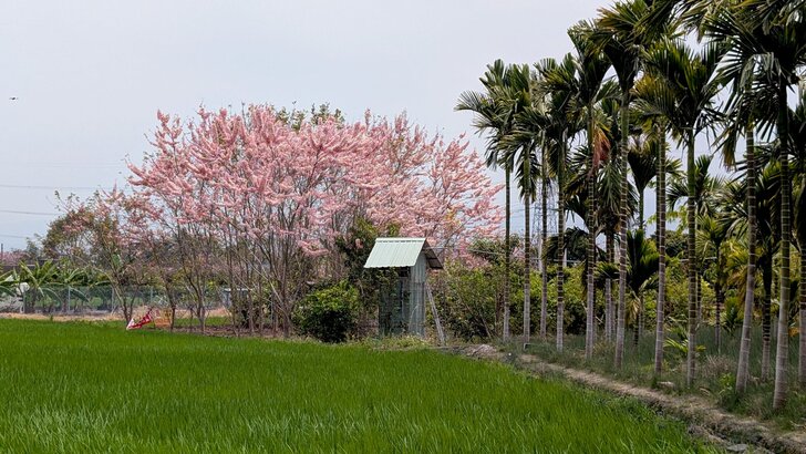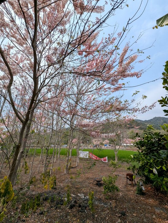 對面田裡一個花旗木林,花開似乎頗盛好看.↑