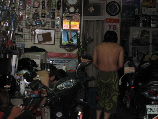 當晚我和阿德(主辦人)和阿彰 3個人要睡在車店(其實是因為我會起不來睡車店也比較方便) 我和阿彰都選擇在半夜洗車因為半夜洗車比較涼快又有電扇可以吹(洗車還有電扇哈哈只有一個字 ''爽'' ) 那晚3個無聊仁和老闆聊天聊到3點才去睡.那時我也順便調整了無線電和測試無線電是否有問題.那晚車店門只關一半.沒睡的人用電腦看電影.也順便顧店和顧車.而我卻在躺在椅子上睡著了一會