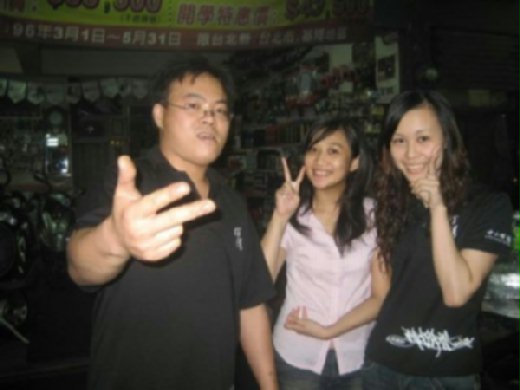 (注意看喔!!有一張照片那個男的就是車店老闆 他對待人很好喔!!而旁邊2位則是隊裡的2位美女 ~~ 而身上穿的就是車隊的隊服 不錯吧!!)