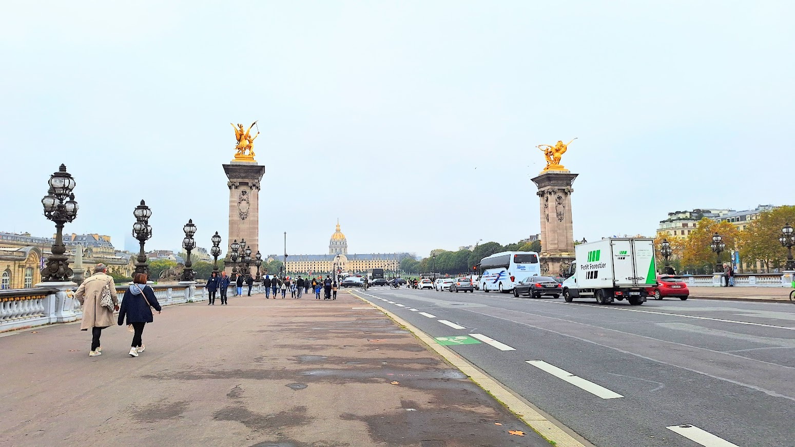 視覺效果:從橋面仰望,鍍金雕像與藍天形成強烈對比;從塞納河遊船遠觀,則與艾菲爾鐵塔、大皇宮構成經典巴黎天際線。