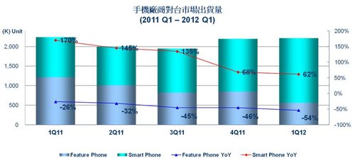 ITIS公布,消費電子產品因傳統淡季影響,今年首季台灣手機產值新台幣616億元,較2012年同期衰退40.7%。   經濟部技術處產業技術知識服務計畫(ITIS)指出,個人行動裝置手機方面,國內ODM...