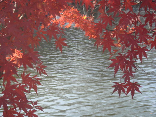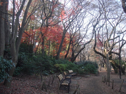 攝氏8度C,冬季的井の頭公園,零零星星還有幾株紅槭,增添公園裡的些許色彩,默默地在心中許下希望春天櫻花花開時,能再來這裡饗宴櫻花飄落的奢華美景。
