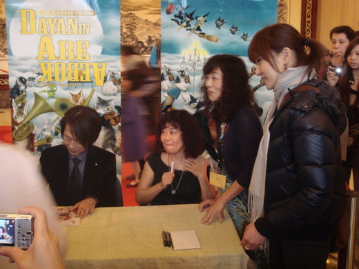 另外的驚喜是得知達洋的創作者池田晶子會出席,並辦簽名會;更難得是發現池田小姐的家鄉是日本吉祥寺,恰巧最近在吉祥寺的井之頭公園享受過那份悠閒,所以挺能體會動畫詩中達洋慵懶的在櫻花雨的月夜中在夢幻ABEKOBEA國度,與瑪西兔、伊凡鱷魚、月亮姑姑、還有魔女三姐妹等人,帶出一段又一段奇幻的故事,也享受著月光下音樂會的那份快樂氛圍!!