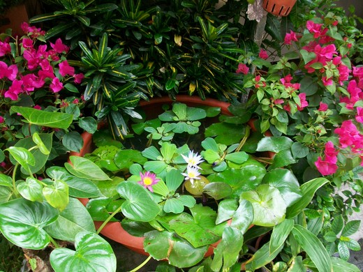在店門口旁 , 小小的花園中 , 阿花造了一個小蓮花池