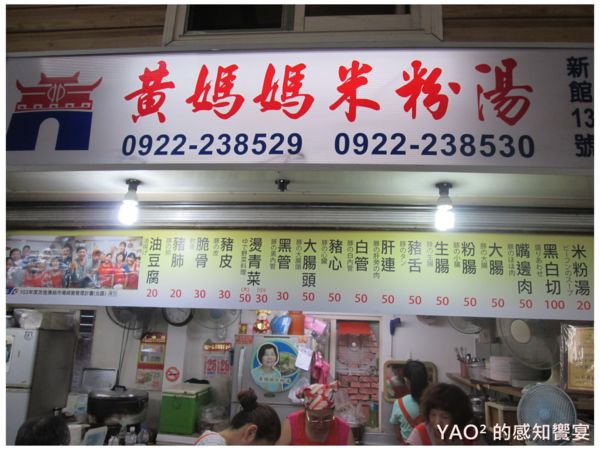 一來到經營40多年的黃媽媽米粉湯,就可以看到各式美味的小吃名稱陳列在你面前,且一張100元小鈔就可以享受到多種美味,實在划算,然後你仔細一看它的菜單上竟然還特地標示日本語,可見黃媽媽米粉湯火紅的程度可是飄洋過海到日本呢!