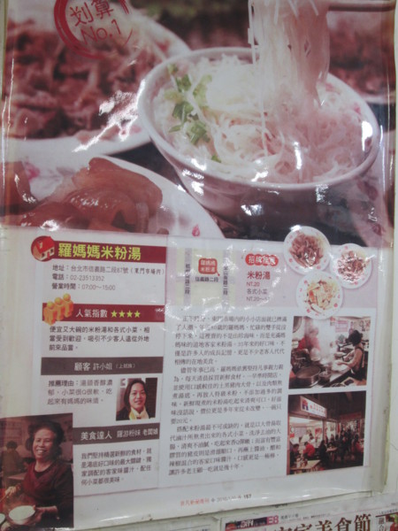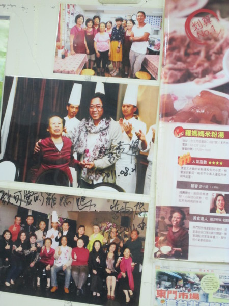 羅媽媽米粉湯用餐的地方貼滿了各式與名人合照與美食的報導。