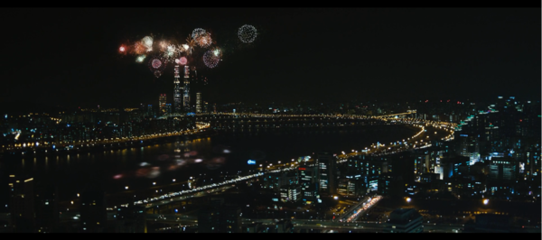 Tower Sky大樓的聖誕驚喜就是由直升機群搭載降雪器具在煙火過後來個人工降雪,替不可能發生的銀色聖誕製造可能。