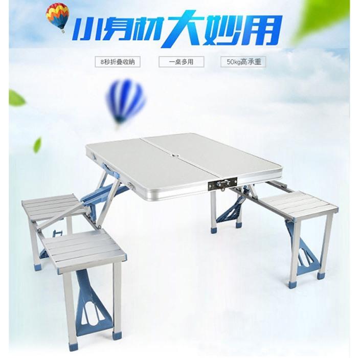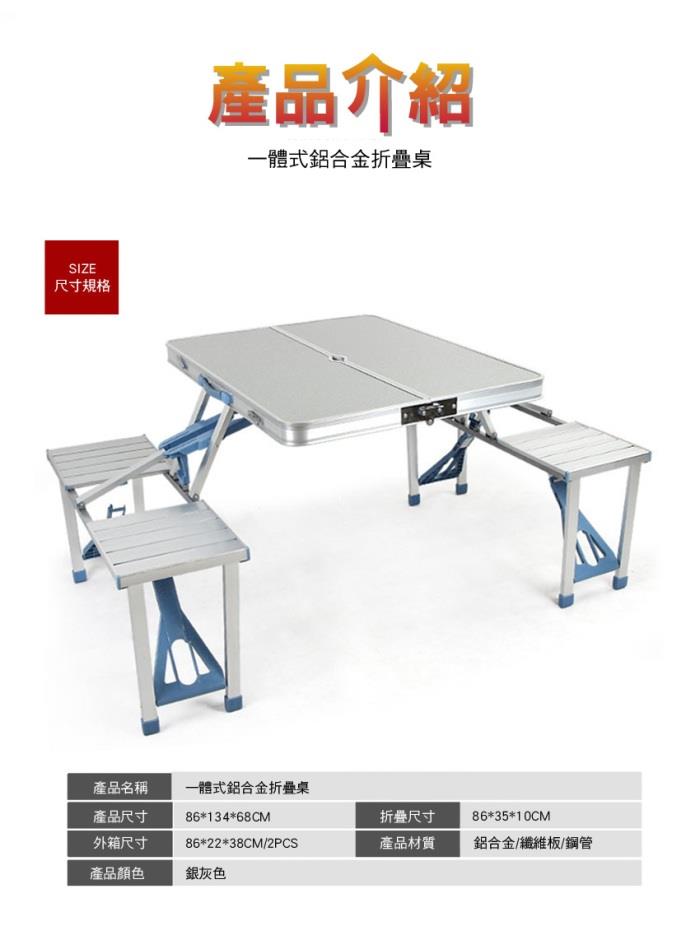 ◎桌椅組一體式折疊設計,多樣化使用方式|◎露營、野餐、垂釣、辨活動、旅行、擺攤均可使用|主商品:一體式鋁合金摺疊桌椅組*1