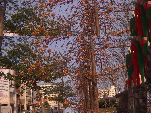 紅紅的花開滿了木棉道 長長的街好像在燃燒