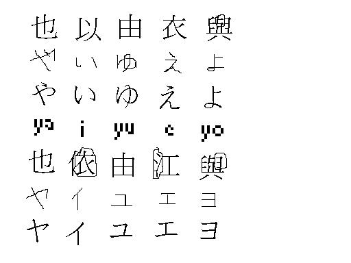 輕鬆學日語50音.雖然說50音.二次大戰後.原本51音圖表.最後變成了46音而已.所以今天學的いえ--イエ 跟原先的 あいうえお-- アイウエオ 因為發音一樣.因此比照あ行發音.所以今天只學新的字.三個字而已.就是やゆよ--ヤユヨ