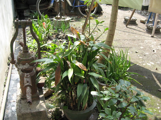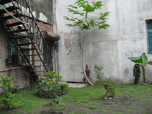 彰化老家廚房紗門外的一小畝綠地,是我經常駐足紓解壓力的地方〈一棵木瓜樹、一個舊甕、一座破舊的幫浦〉,因為是老房子四周也沒什麼景觀視野非常貧瘠,忍無可忍之下,發了一點工夫稍作整頓,果然還差強人意,現在就等香蕉、木瓜成熟時了。