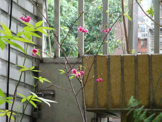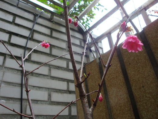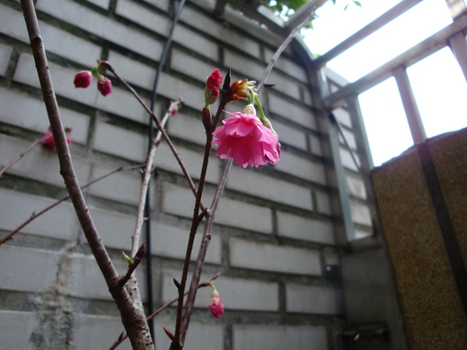 去年夏天移植的八重櫻,在我天天的關注下,從有葉→掉葉→幾乎枯死→長出花苞→花兒盛開,這幾個月中的心情隨著它的轉折起伏,有如在照顧嬰兒般既辛苦也安慰,既然已有嬌艷的花朵和稚嫩的新芽,表示它們已適應環境活下來了。所以我打算再多種幾棵,寄望明年的現在盛開的櫻花,讓我家也能擠身『豪宅之列』,能悠閒的在櫻花樹下賞花、喝茶。這個願望可能有得等吧?