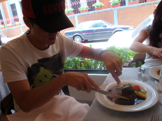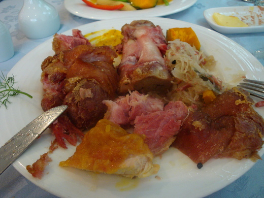 老公半個月不在國內,我三餐也幾乎沒煮,冰箱沒菜廚房也清潔溜溜的,因每星期有幾天回中部老家陪公婆,其他時間兒女不一定回來吃,所以就趁這個機會,把住家附近的餐廳帶孩子們一起去品嚐看看,雖然這些餐廳已經在那裡開業十多年了,但近在呎尺我們卻捨近求遠的,不曾光顧過。是不是處在福中不知福呢! 譬如〝布查花園餐廳〞的德國豬腳,我蠻喜歡的,不像滷的那麼油膩。而且顏色也很美,可謂秀色可餐。
