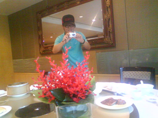 兒子生日,也不知道送甚麼好,因為還不會賺錢,食、衣、住、行、全在父母掌控之下,豐衣足食的。但總要表示一下,所以老媽在他左臉頰重重的親了一下,讓兒子夠份量的體會母愛的深遠!大女兒也安排在遠企六樓的「香宮」宴請弟弟,一方面祝他『生日快樂』,一方面預祝他考上理想的「研究所」。午餐的菜色很多,對年輕人是蠻誘惑的,但我們兩個老的是﹝ 擇而食之﹞,重點是為了跟兒女們歡聚一堂。