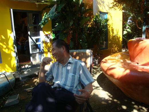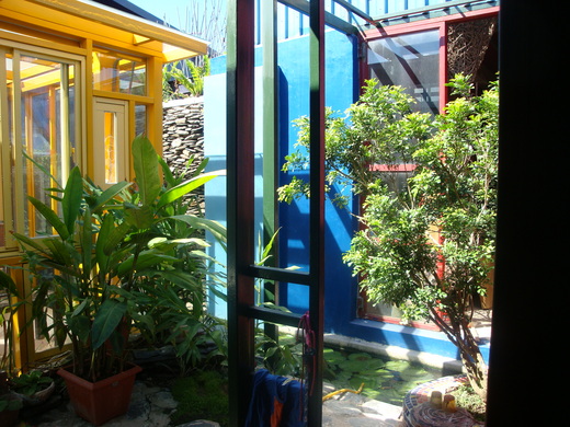宜蘭地靈人傑的,醞育出多位極低調的藝術家,隱藏在鄉間和田埂間。今天風和日麗的,先生和我專程去拜訪我們家孩子們的好大哥,大名不便公開。他的家讓我驚豔不已,光影交錯色彩绚麗的,舖上幾張共享之。