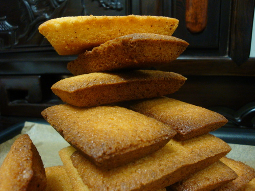金磚!多炫的名詞,但它真的是黃澄澄的樣子,有個黃金的外表,但吃起來卻酥軟香甜魅力無窮,這些都是我烤出來的,醞育這麼 多的金磚出來,因為愛烘培內心的滿足幾乎富可敵國。