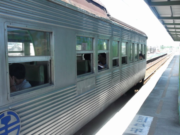 2013年的夏天,我們改由火車做全程的主要交通工具,這樣一路由桃園而蘇澳,停留一天後,再由蘇澳而花蓮,準備從花蓮轉列車至壽豐 。未想通勤電聯車方一停靠花蓮站,月台另一側隨即看到一小列白鐵仔正蓄勢待發,將往南向。這下子大家可歡天喜地、拍案叫絕,隨即直入車廂另行補票。經過一年未見,白鐵仔保養得還算不錯,起步的引擎聲同樣是轟隆價響,聲勢逼人。一開始的加速雖慢,但中尾段漸入佳境,夏日薰風由車窗豪邁地灌入,配合360度旋轉的電扇嗡嗡作響,雖車外氣溫不低,但暑熱已褪去大半。