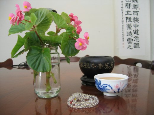 倒數第二張供桌和其上面的花兒,念珠的組合,真美