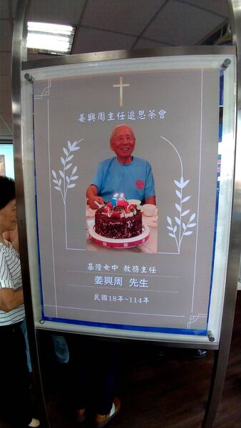 與會者除了姜老家屬,多半是女中的老同事、老校友,大家追憶逝水年華,追憶姜興周主任種種辦學經典事蹟,有位女中校友語帶哽咽,自訴本已被父母安排入工廠就業,是姜主任特地往家裡為她求情,這才讓她重返校園,日後再考取師大物理系,人生因此翻轉;校友說到哽咽處已不能持續,發言至此停頓。