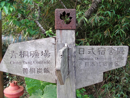 過橋後,宿舍的門口張掛著「北海道」,這是台籍長官住宿區。菁桐曾經是煤炭開採區, 顏雲年 先生所經營的台陽礦業於日治時期賣給日本政府,平溪鐵道也是為運煤而鋪。若不是日本總督府接收,今日也不會有這條沿著基隆河谷攀爬的鐵路載大家到這煤鄉深處尋幽訪勝。