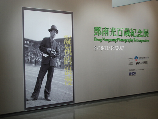 館區經歷多載, 並無明顯變化。 往上直趨鄧南光的展區, 這是今日來此的重點。 心想三個月的展期已近尾聲了, 如果再不來參拜, 更待何年何月復求此機 ? 一開始走到入口處,便為這全身的鄧南光肖像而震漾; 年少青春的容貌, 紀錄人文百態的犀利眼神, 此像已頗能顯露特色數分。 接續進入展間, 猶如陷進歲月長河, 一脈的黑白色調, 是台灣早期前輩攝影家與這塊土地對話的視覺引子, 長河裡每張優異光影的交射, 在紀錄攝影家人文深情關懷的憂喜悲歡。
