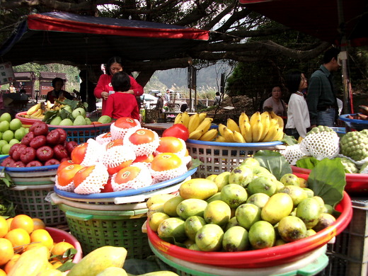 我問一旁老婦的小孫女: 「 生意好嗎? 在這裡賣水果好不好玩呀 ? 」小女孩靦腆無笑容的臉龐只是害羞著不語。