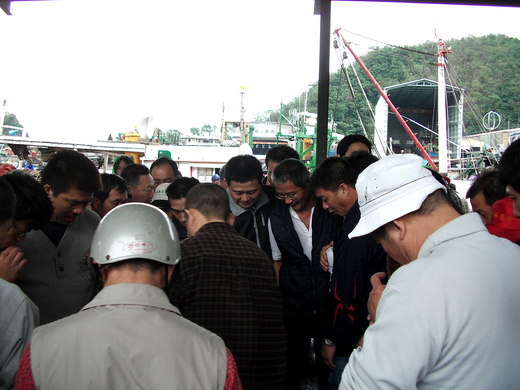 漁港說大不大, 說小不小,不到半小時約可大致走個基礎樣貌。 此番再由漁市走回南天宮前, 見到幾名釣客興沖沖舉著釣竿往漁船底垂釣, 心想港灣的凹處裡怎有魚蹤? 不看還好, 經旁人指引,仔細往船底周緣一瞧, 啊! 竟是成百上千的烏魚, 一群又一群匯聚在不同的船底 ! 是迷航的魚群麼 ? 岸上眾說紛紜, 無人可說個準。 倒是兩岸食店的廚師們此刻反篡起討海人, 一尾尾約莫25公分大小,應屬青少級的烏魚,就這般被不斷釣起 。只見圍觀的人眾愈來愈多,大家均對此幕難得親睹的畫面而感驚喜。