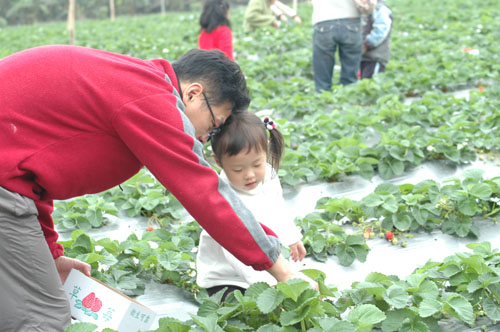 國六開通後,中潭公路經草屯進入國姓鄉,路旁店面十分冷清,看到「草莓巧克力」招牌就有停車場,走水泥路面數十公尺即見「蚊帳」罩著的草莓園,老闆貼心提供塑膠雨鞋讓遊客換穿入園,不必擔心泥濘沾腳。自採後秤重,一斤180元,且出園回到停車場,路邊小攤免費提供一鍋加熱的巧克力,遊客清洗草莓後沾巧克力趁新鮮吃,別有一番滋味。
