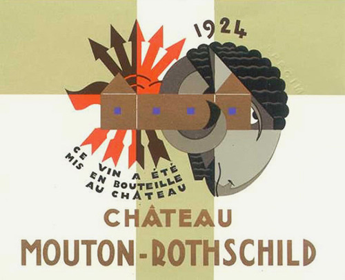 1924年木桐酒莊的(菲利普Baron Philippe男爵)聘請法國立體派藝術家〈Jean Carlu 英文發音:金‧卡勒、 法文發音:糾‧克哈魯、中文翻譯名:讓‧喬治‧萊昂〉設計木桐的酒標。