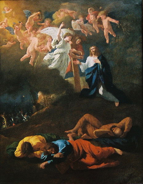 〈圖片左:普桑Nicolas Poussin自畫像,普桑畫作The Mount of Olives 橄欖山〉