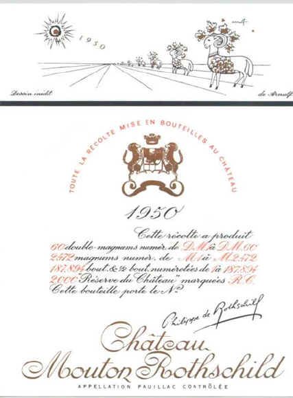 在木桐1950年酒標中,體現出他嚴整的設計,畫作是屬於(Georges Arnulf喬治‧阿努爾夫)早期的風格。