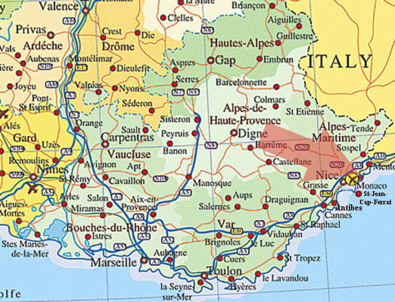 〈圖片:monaco 摩納哥和 Nice(紅箭頭處)在法國的位置,舉世聞名 Monte Carlo Casino 摩納哥蒙地卡羅的賭場〉