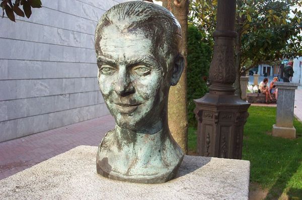 〈圖片:愛上(達利Dali)的西班牙詩人(Lorca羅卡) 少年時、1934年時及西班牙國內為他特製的青銅像和頭像〉