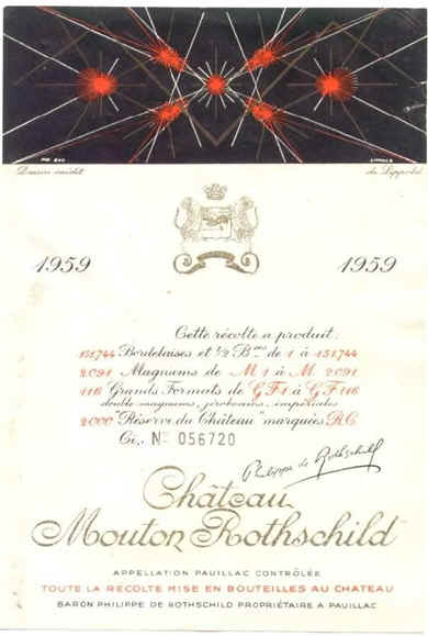 〈圖片:1959年木桐酒莊的酒標及圖像〉