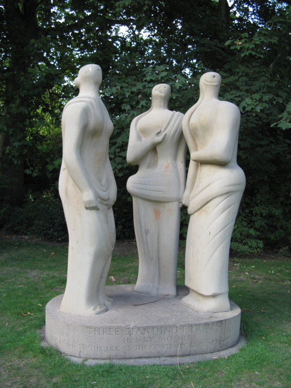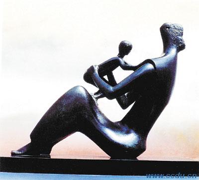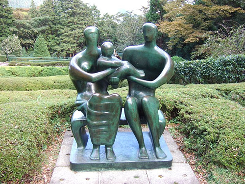 〈圖片:Henry Moore亨利•摩爾的作品,左起:王與后,母與子,一家人和3個女人〉