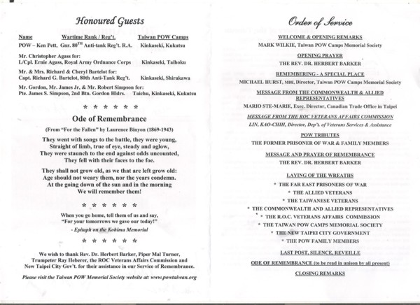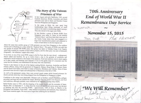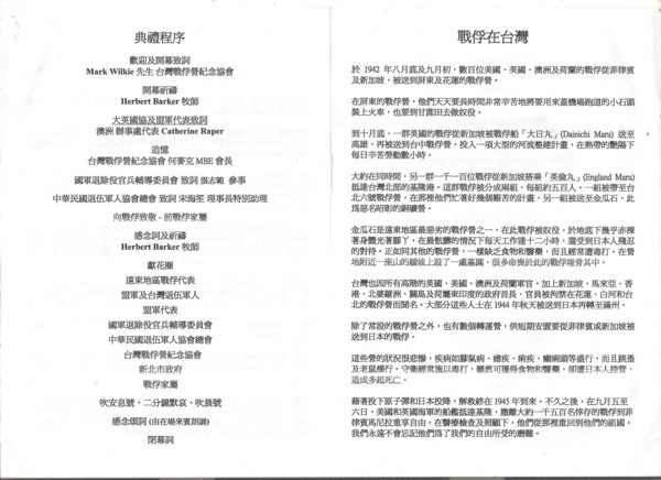 2015年金瓜石戰俘營追思活動程序表英文版。