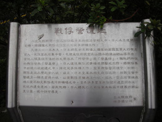 去年.十一月十五日.約了幾位格友,專程回金瓜石.參加在戰俘營遺址 舉行的戰俘營追思禮拜~~事後,格友向我說,明年,他╱她一定會再來參加這.回來後,跟兒子媳婦說起戰俘營悲慘的故事,兒子說,今年,全家三代一起參加.