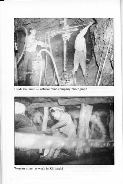 (金瓜石礦坑內,礦工工作情形。)