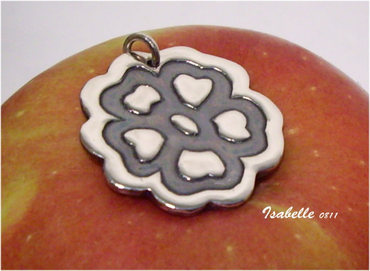 這堂我們做剪紙型壓紋墜子,我盯著自己在家裡刻好了的幾款紙型猶豫著,老師仔細的看了一會兒說:「妳的刀工還不錯嘛!」我不好意思的回答:「以前玩過一下下紙雕啦──」(這是她第一次、也是唯一的一次稱讚)她指了指一朵帶著枝葉的鏤空花朵:「做這個好了。」我沒信心,保守的選了個團狀鏤空花,當時還真的沒在意老師會怎麼想。另外兩位同學都是挑老師手上現成的打洞機紙型來著手。