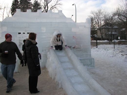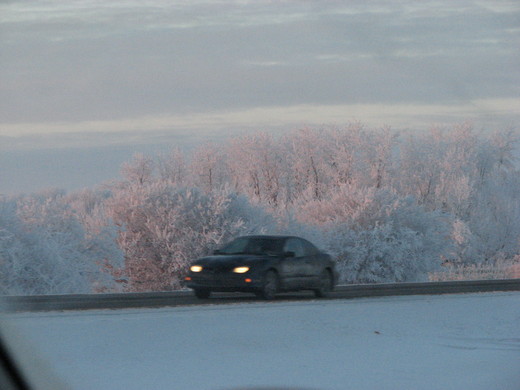 這是第一次自己開車去,老公千交代萬交代,開新車有四輪傳動防滑,又有 GPS 導航系統,走 44 號公路,只要出了城,上了公路,沒有任何的轉彎,一路往前開,雖然遠一點,但不會迷路,三個小時就到了。〈前幾次是老公開車,我在旁邊聽聽音樂、睡睡覺,覺得還 OK 〉。中午十二點半接了真兒放學,就往 Slave Lake 前進,這裡冬天的太陽,永遠不會照在頭頂上,斜斜的就像探照燈一樣,把整個城市照的閃閃發亮,卻依舊是寒風刺骨。