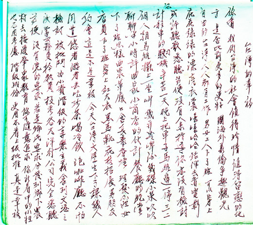 我那時才十幾歲,以為這是爸爸希望媽媽和我要珍惜台灣的幸福,看看錯別字還真不少。再仔細看信才知道,其實他是擔心我穿上紅大衣、黑馬靴,交男朋友,不喜歡待在家裡。老爹的想像力還真不是蓋的,操心啊!
